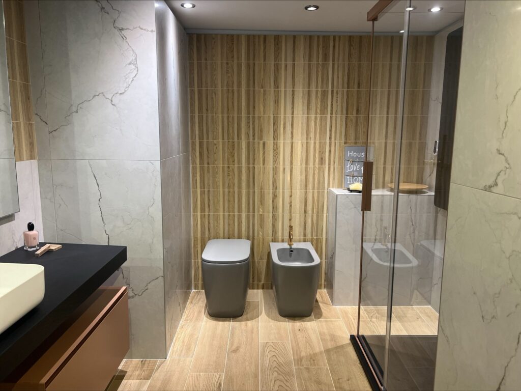 • Piastrelle e pareti: se hai scelto rivestimenti chiari, sanitari bianchi o grigi offriranno un look pulito. Se invece hai piastrelle scure o decorative, considera sanitari opachi o colorati per un contrasto elegante.