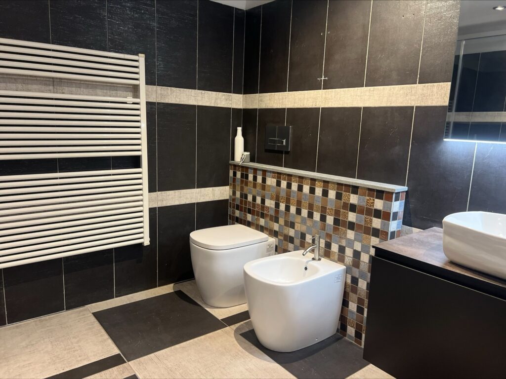 • Sanitari sospesi: alleggeriscono visivamente lo spazio e facilitano la pulizia.